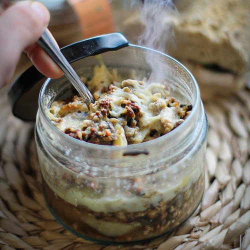 Gratin de pommes de terre fondantes, agrémenté de champignons, d’oignons, d’un haché de viande (bœuf et porc) et de grana padano.