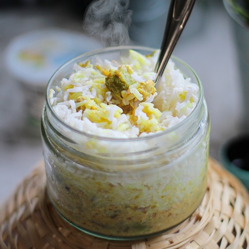 Ingrédients : riz basmati (riz, eau, sel) 36,8%, viande de poulet origine France 31,5%, eau, oignons 7,7%, olives vertes (eau, sel, acidifiant : acide citrique), gingembre, jus de citron vert (eau, jus de citron vert à base de concentré, pulpes de citron, acidifiant : acide citrique, extrait de citron vert) 1,4%, jus de citron 1,4%, piments, huiles de tournesol et d'olive vierge extra, persil, citron vert, ail, MOUTARDE (eau, graines de MOUTARDE, vinaigre d'alcool, sel, conservateur : diSULFITES de ptassium, acidifiant : acide citrique), fond de volaille (farine de BLE, sel, extrait de levure, graisse de poulet, arômes, oignon, viande de poulet, CELERI rave, carotte poudre, poireau, plantes aromatiques (laurier, romarin, thym), curcuma, antioxydant : extrait de romarin), raz el hanout (coriandre, curcuma, romarin, fenouil, fenugrec, sel, cannelle, piment) 0,1%, sucre, sel, curcuma 0,1%, poivre.
