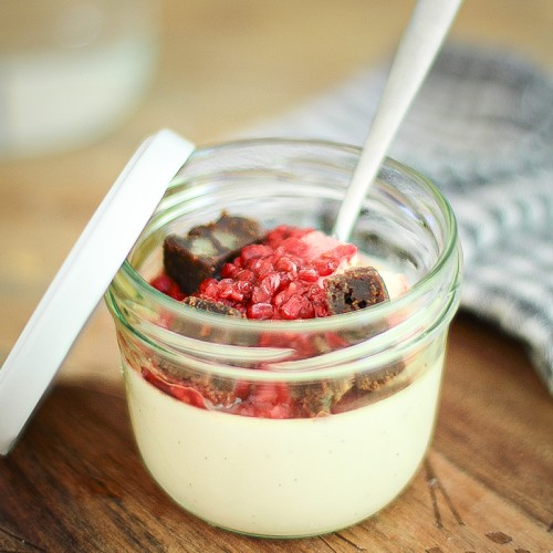 Maximize Crème aux œuf, gousse de vanille, carré de brownies.