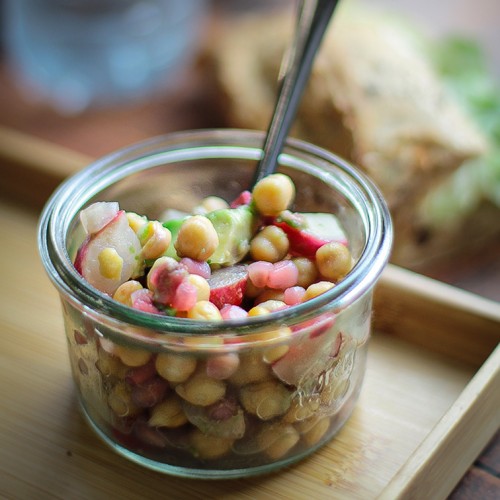 Ingrédients : Pois chiches (eau, sel), avocat, radis, grenade.