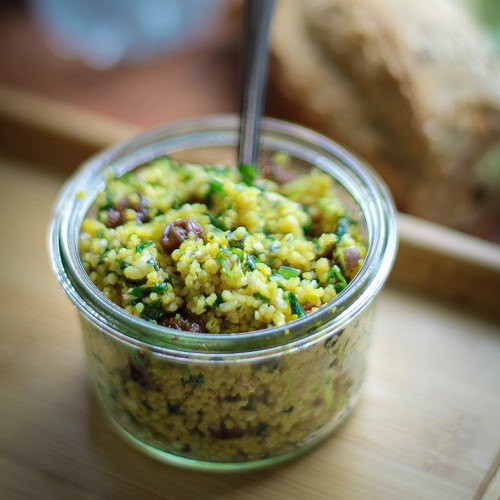 Maximize Semoule au curry, chou-fleur, fenouil, raisins blond.